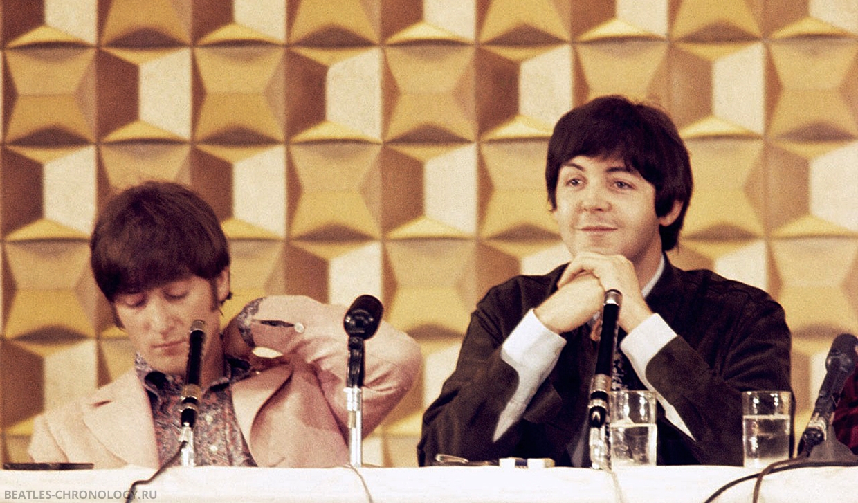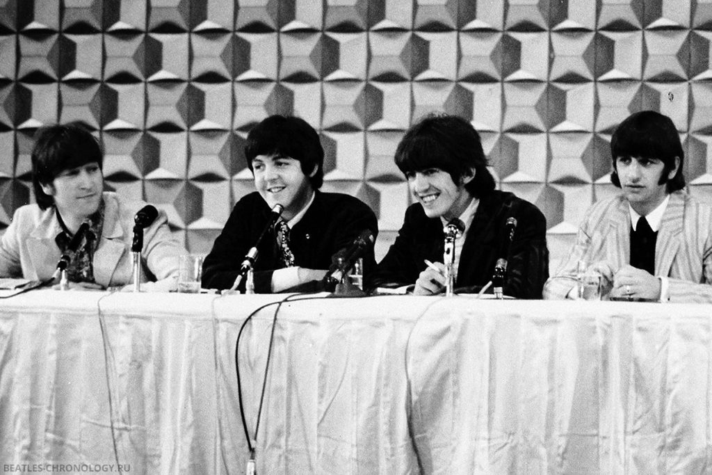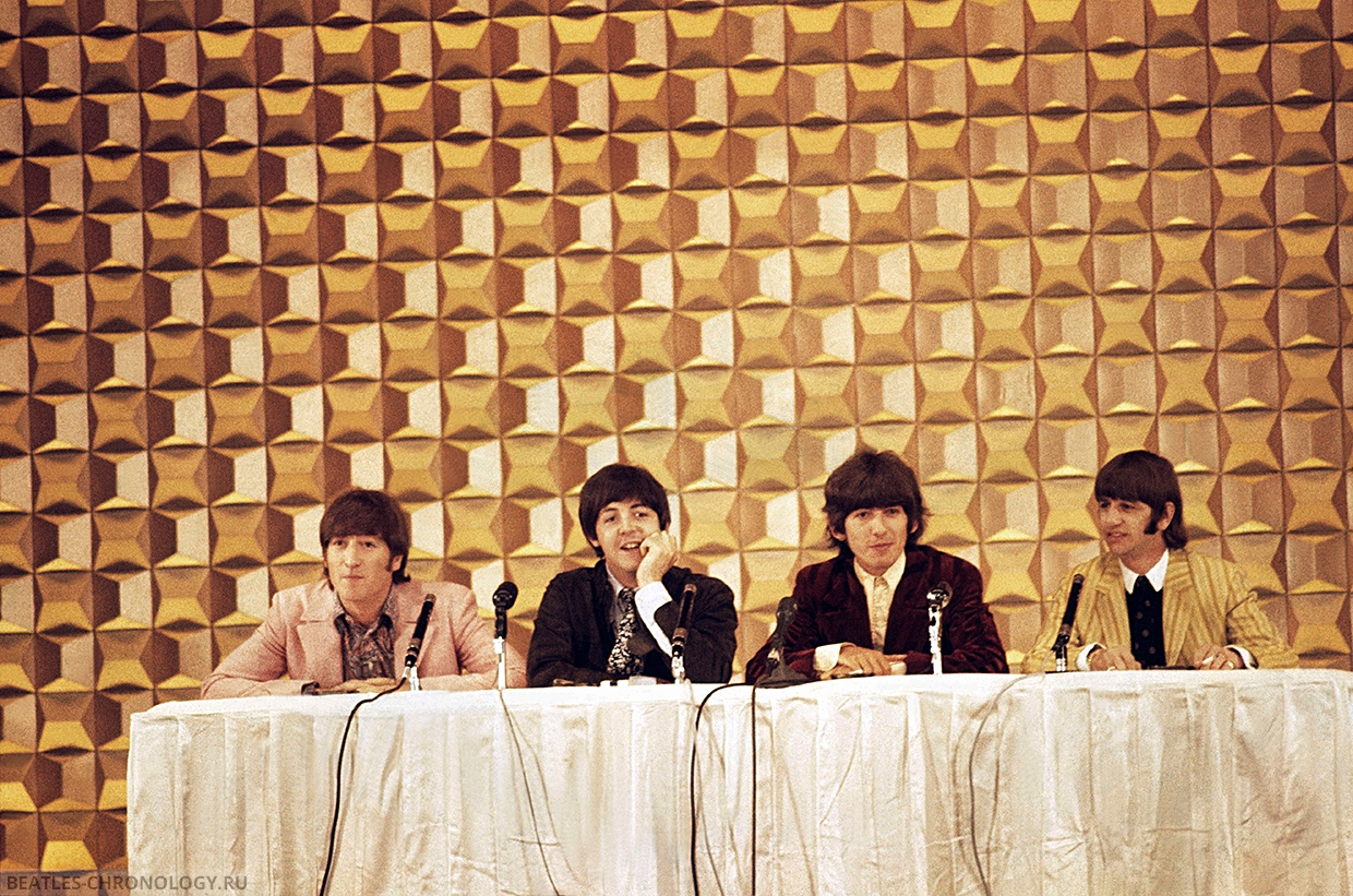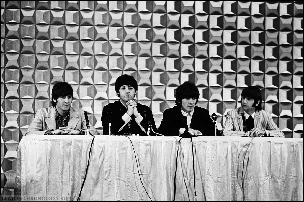 […] In Germany, press conference questioning was depressingly unintelligent. In Tokyo on Wednesday, questions were sensible but conducted in an atmosphere so freezingly formal that the familiar wit and verbal vitality of the Beatles seemed out of place.