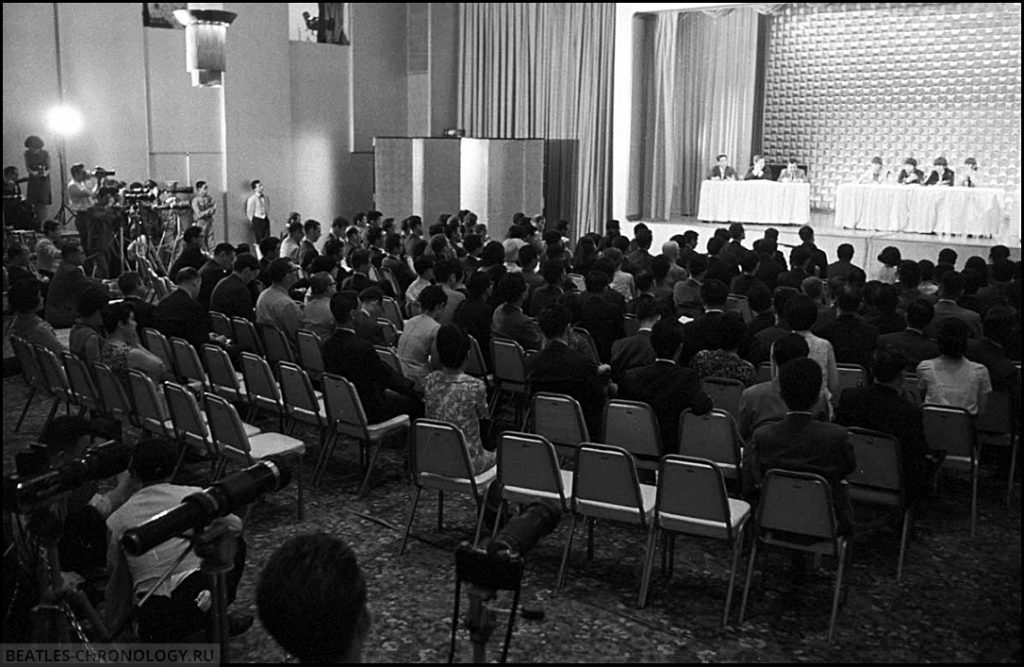 On the afternoon of June 29, The Beatles gave a press conference at the Hilton Hotel and were also interviewed buy NTV Channel 4. This press conference was held at 3:20 pm. Questions were asked in Japanese and were translated for the Beatles.