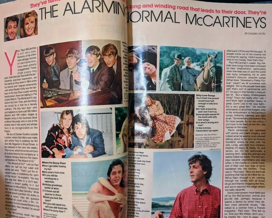 So the term “survival,” literally and figuratively, is as relevant as the term “success” to Paul McCartney, and sheds some light on the life he has chosen. For the McCartneys, caution, conservatism, capitalism, conservation, and deeply traditional values — “alarming normalcy,” as Paul calls it — are consciously cultivated characteristics. They are the family’s protection against burnout, their ticket to a life even legends have a right to — a life in which, as Linda says, “every living thing is free to be happy.” And, as we should know by now, it takes a whole lot more than fame, money, success, and a cute face to be that.