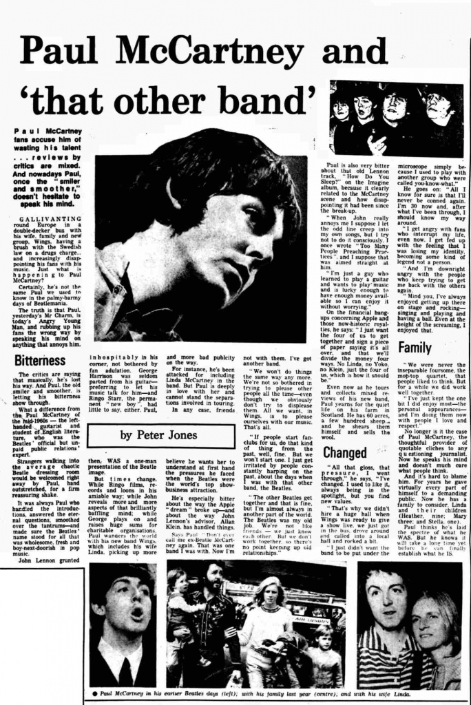 “Don’t ever call me ex-Beatle McCartney again. That was one band I was with. Now I’m not with them. I’ve got another band. We won’t do things the same way any more. We’re not so bothered in trying to please other people all the time even though we obviously don’t try to displease them. All we want, in Wings, is to please ourselves with our music, That’s all.