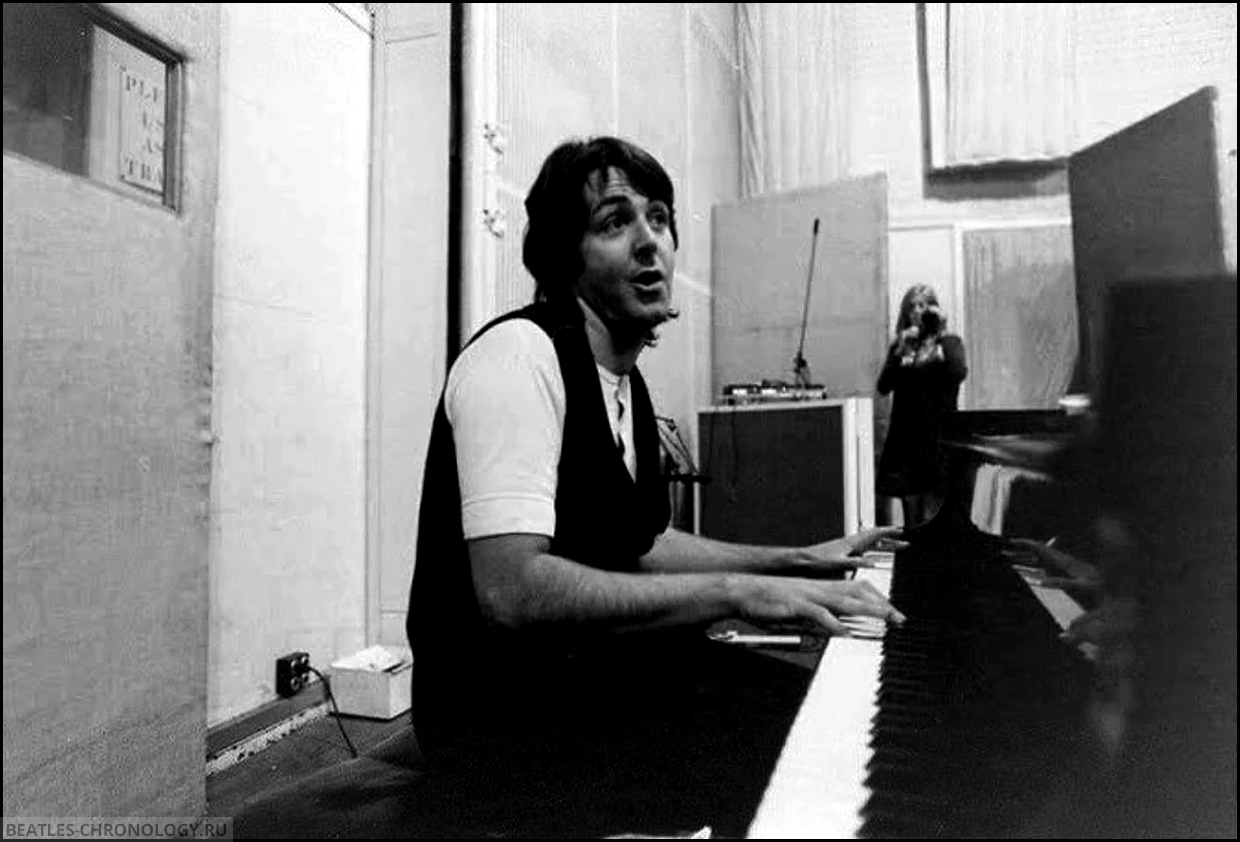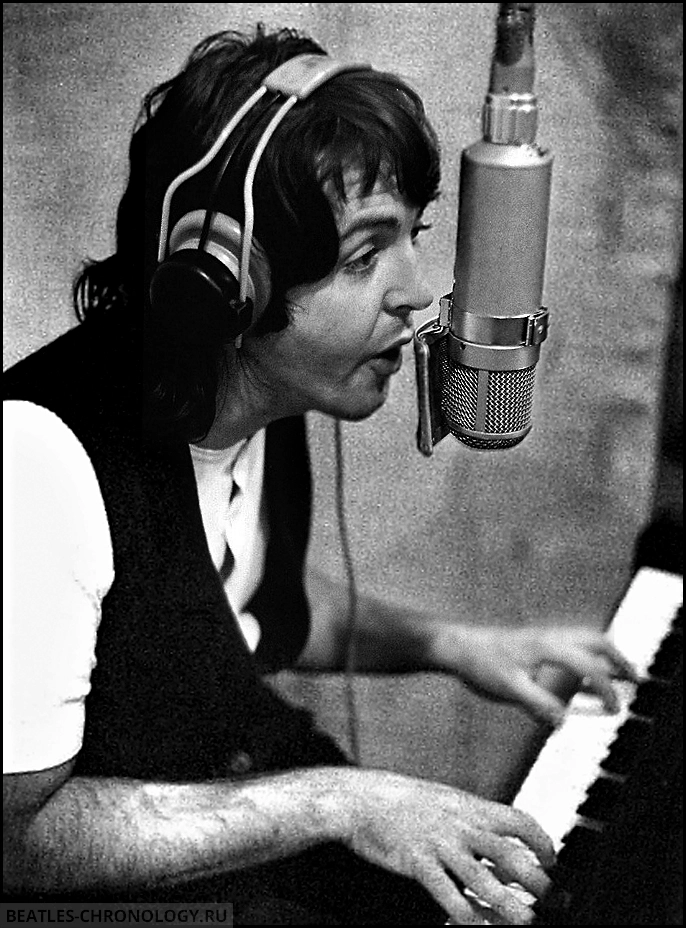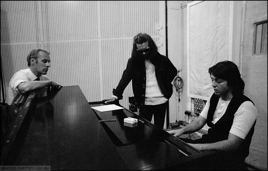 On this day, Paul brought the song back, and the group began recording the basic track. Paul played piano (on track three of the eight-track tape) and sang guide vocals (on track eight), George Harrison played bass (track one), and Ringo Starr was on drums (track two). John Lennon did not contribute to the basic track — according to visiting engineer Geoff Emerick, he simply wasn’t willing to — though John never commented on this himself.
