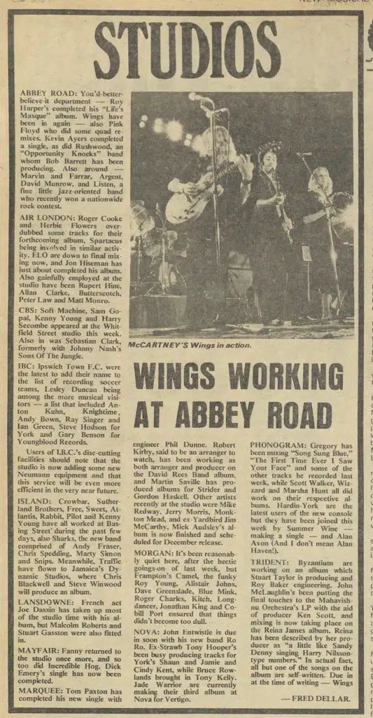 Session September 1972 - January 1973 • Red Rose Speedway sessions at EMI Studios, Abbey Road
