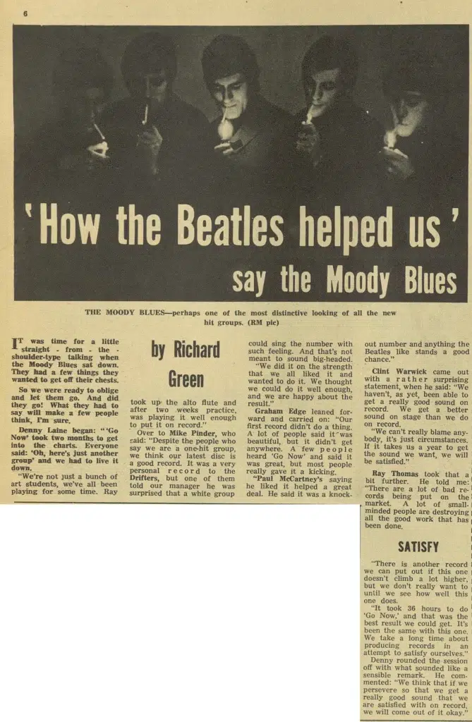 “Go Now!” (adding an exclamation mark) was made popular internationally later in 1964 when the Moody Blues, an English beat group from Birmingham, recorded it, with Denny Laine on guitar and lead vocals. When Laine first heard Bessie Banks’s version, he immediately told the rest of the band that they needed to record the song.