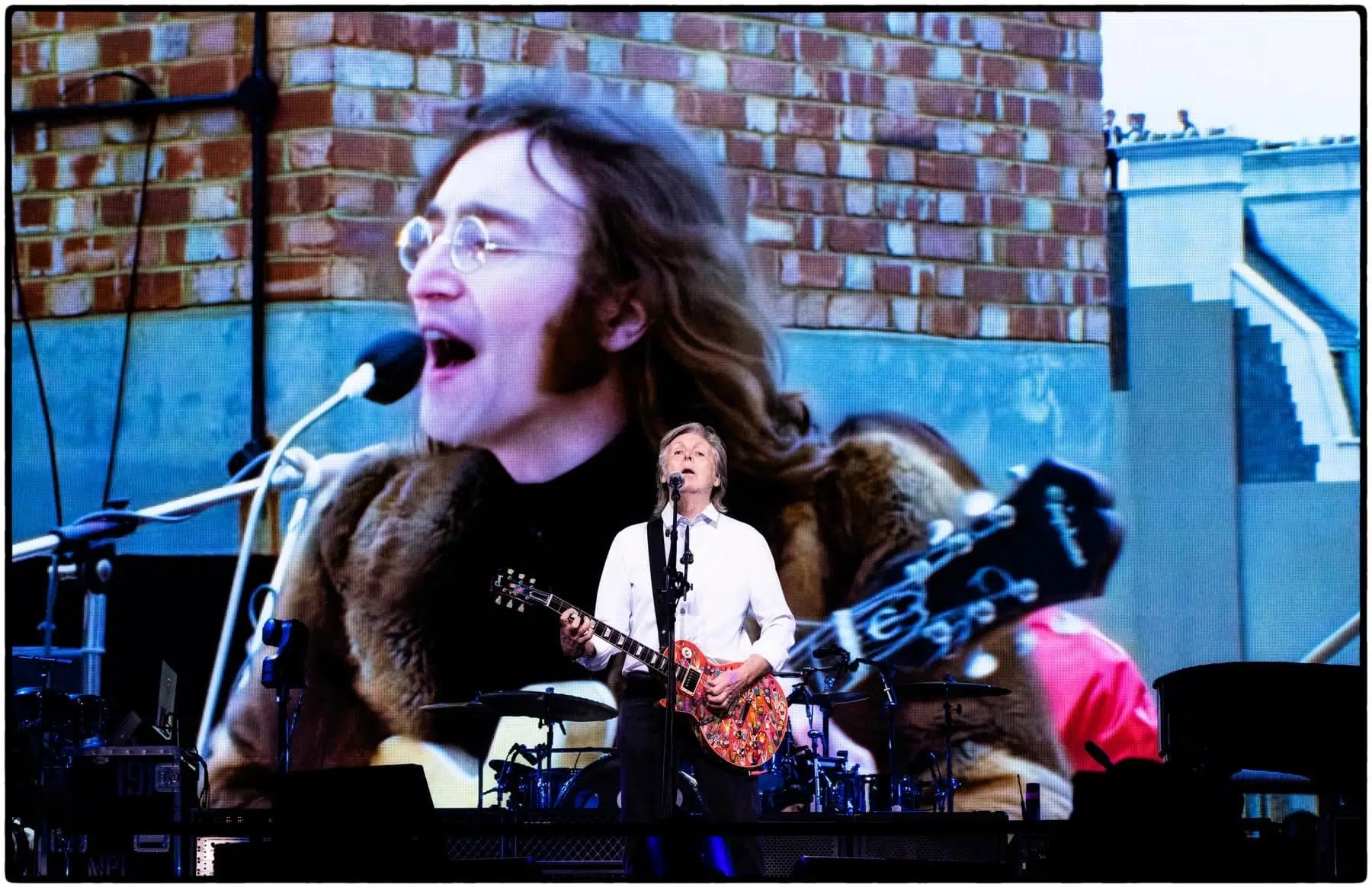 The highlight of this new tour is a virtual duet Paul McCartney has with his old mate John Lennon, singing “I’ve Got A Feeling“, using footage from the rooftop concert.
