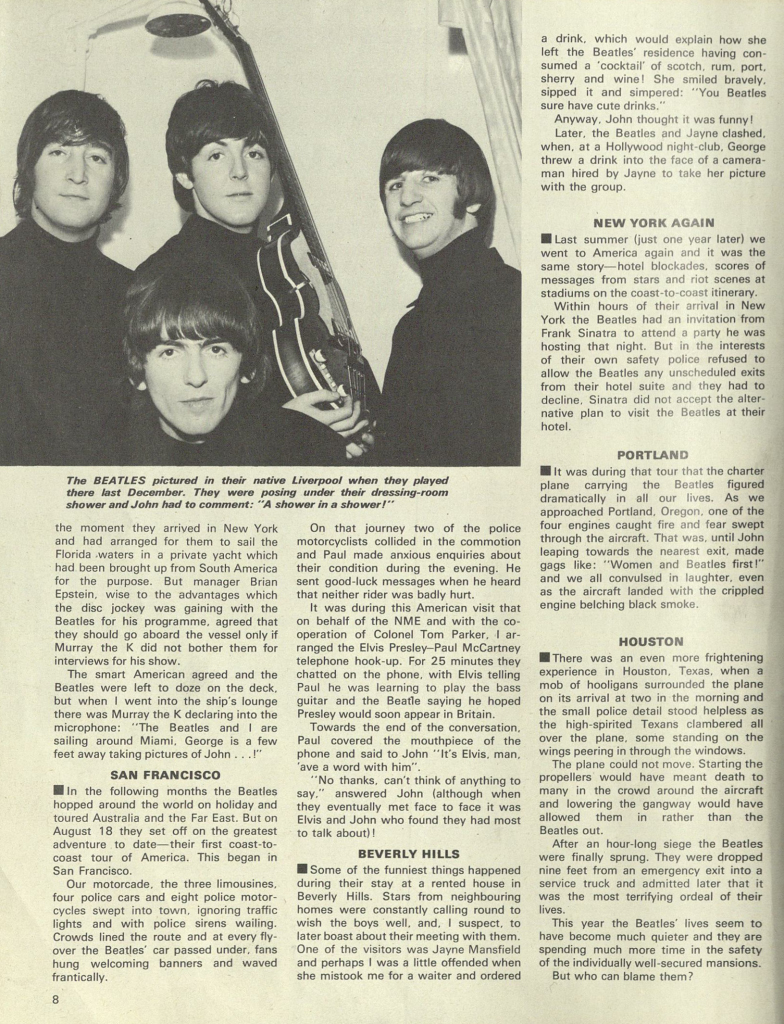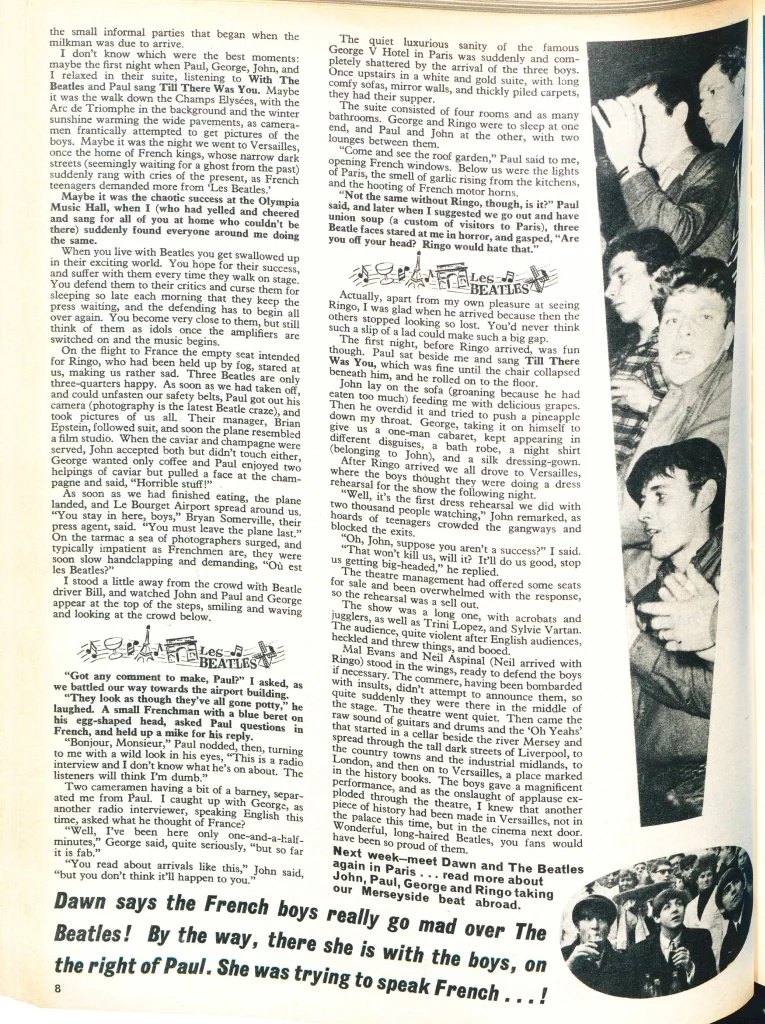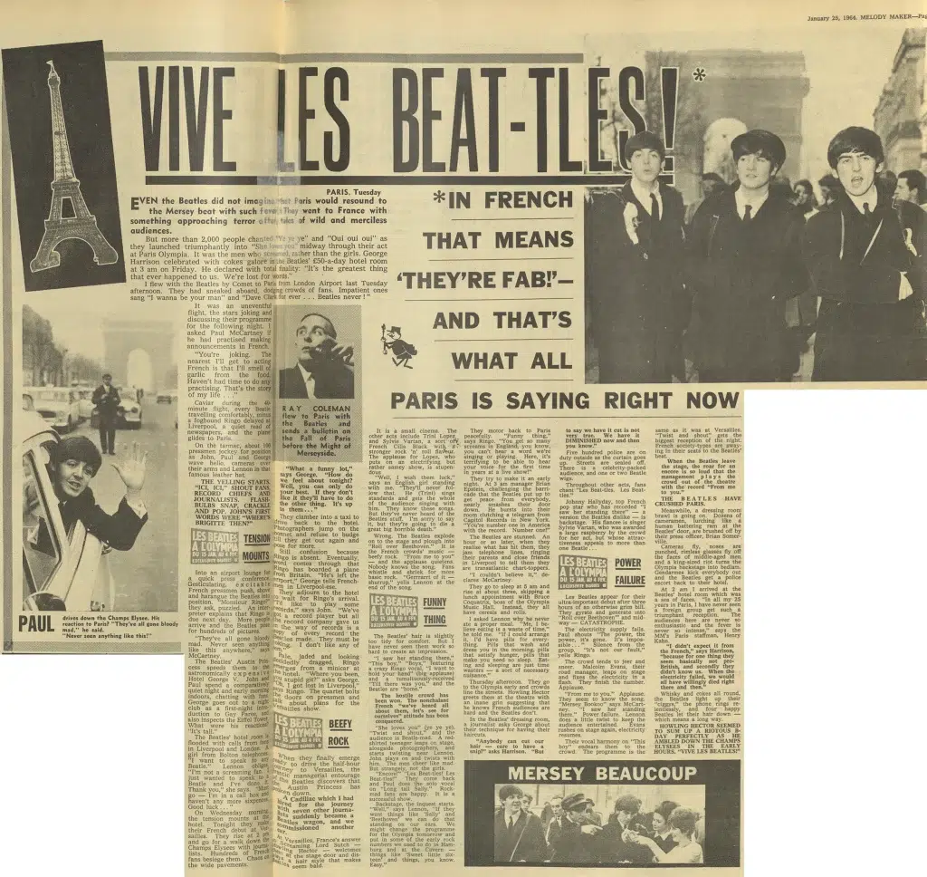 In his book “With The Beatles,” photographer Dezo Hoffmann explained that he took this picture after hearing the news that “I Want To Hold Your Hand” was number 1 of the Billboard Hot 100. However, in the book “Heroes and Villains” by Genesis Publications, it is mentioned that the photo was taken by David Steen. The flag was borrowed from the US embassy in Paris and escorted by the US army to the hotel.